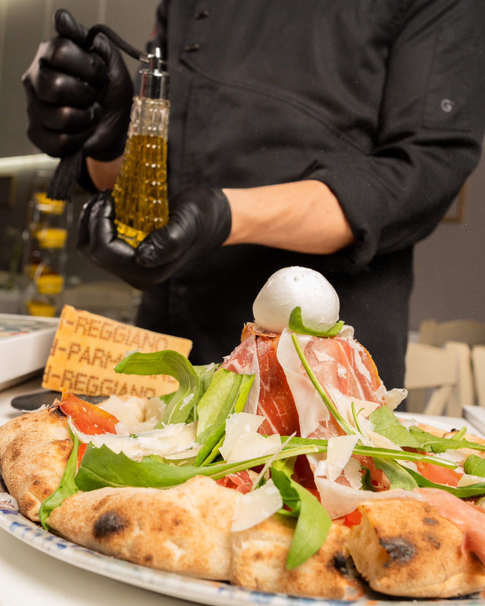 In un’armoniosa simbiosi tra tradizione e creatività, ogni elemento della pizza Vesuvio è stato attentamente selezionato e disposto per trasmettere un messaggio di rispetto e gratitudine. Il prosciutto Crudo di Ciarcia, stagionato con cura per 20 mesi, costituisce un omaggio alla tradizione e alla maestosità del Vesuvio. La rucola rappresenta l’immensa natura che circonda il monte. Infine, il bocconcino di bufala campana, corona la composizione, apportando una nota di freschezza e cremosità.